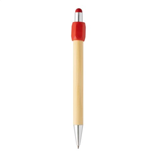 Bamboo ballpoint and touch screen pen with recycled ABS plastic fidget spinner. With blue refill.
