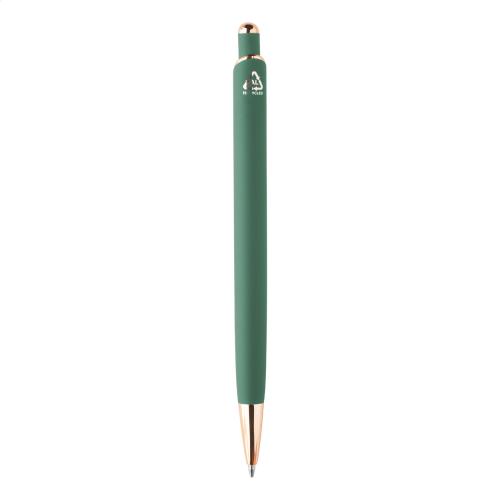 Recycled aluminium ballpoint pen with rubberized finish and rose gold details. With special coating for mirror laser engraving in rose gold colour. With blue refill.