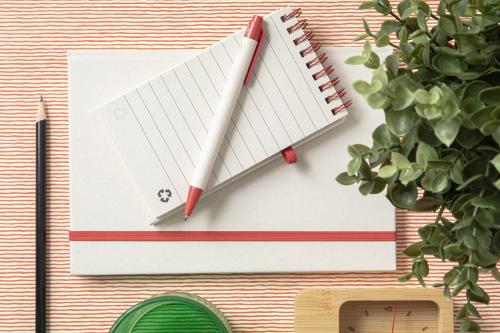 Recycled milk carton paper ballpoint pen with recycled ABS plastic parts. With blue refill.