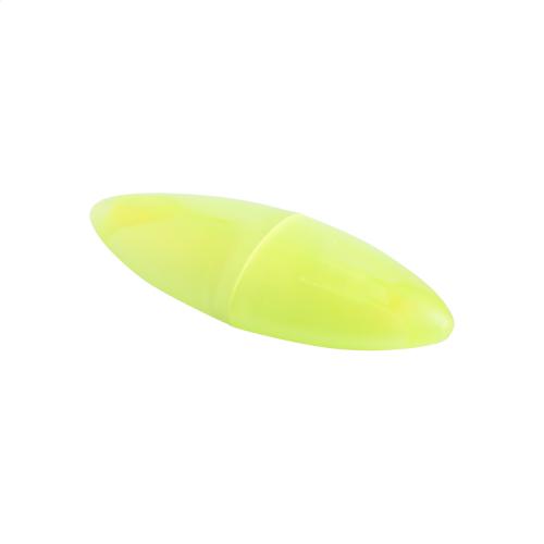 Capsule shaped plastic highlighter in translucent housing.
