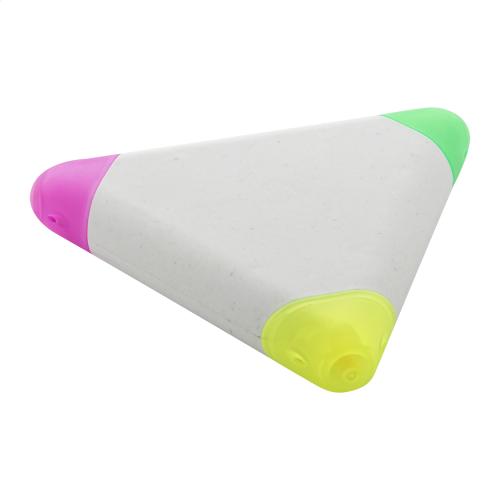 Triangle shaped highlighter with 3 colours in EcoAllene® recycled plastic. EcoAllene® is a new and innovative material derived from recycling beverage cartons.