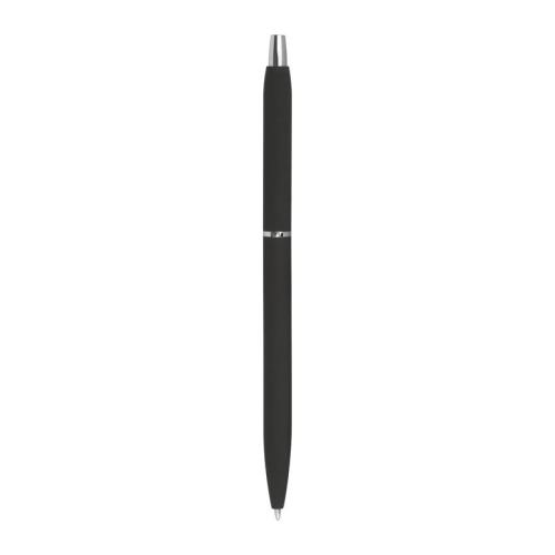 Slim, rubberized metal ball pen in different colours, with silver applications and black-writing refill.