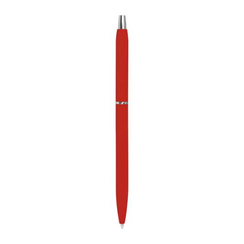 Slim, rubberized metal ball pen in different colours, with silver applications and black-writing refill.
