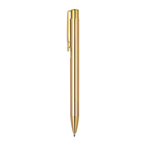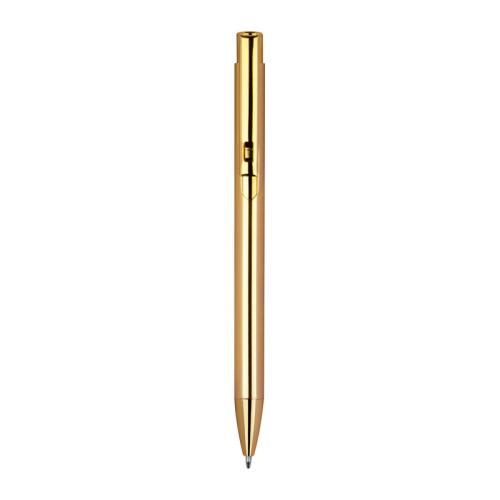 Aluminium ballpoint pen in shiny metallic colours with blue ink.