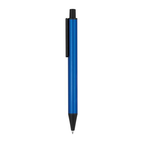 Ball pen made of aluminium in great metallic colours and blue writing large capacity refill.