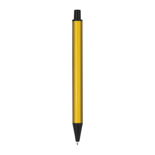 Ball pen made of aluminium in great metallic colours and blue writing large capacity refill.