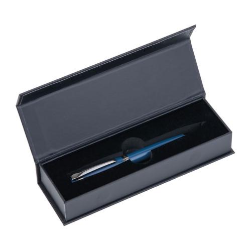 Mark Twain metal ballpoint pen with a subtle Mark Twain logo on the clip and a writing length of 800 m, blue ink. Packaged in a folding box with a glossy Mark Twain logo.