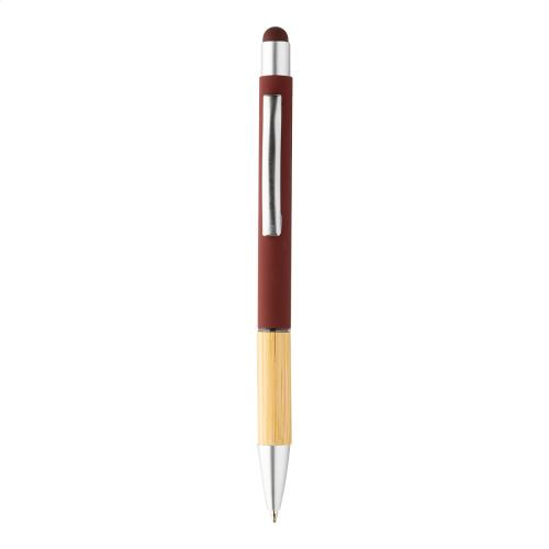 Aluminium ballpoint and touch screen pen with bamboo grip and matte finish. With blue refill.