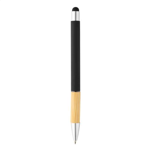Aluminium ballpoint and touch screen pen with bamboo grip and matte finish. With blue refill.