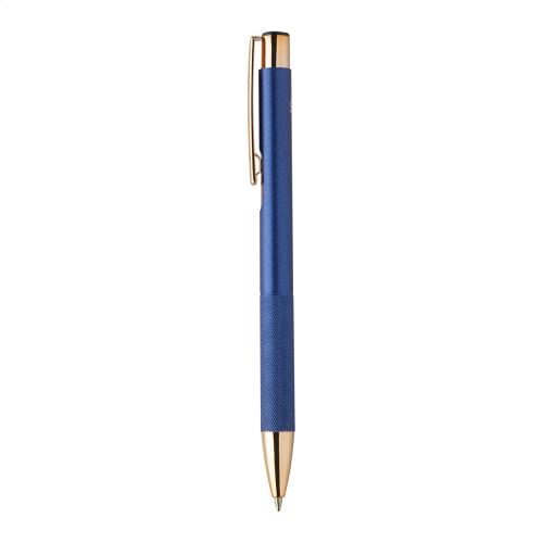 Recycled aluminium ballpoint pen with matte finish body, textured grip and rose gold details. With special coating for mirror laser engraving in rose gold colour. With blue refill.