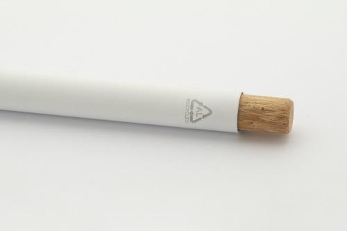 Recycled aluminium ballpoint pen with rubberized finish and bamboo button and chrome details. With special coating for mirror laser engraving. With blue refill.