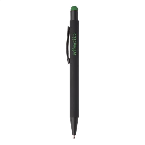 Aluminium ballpoint and touch screen pen with rubberized finish. With special coating for mirror engraving matching the stylus colour. With blue refill.