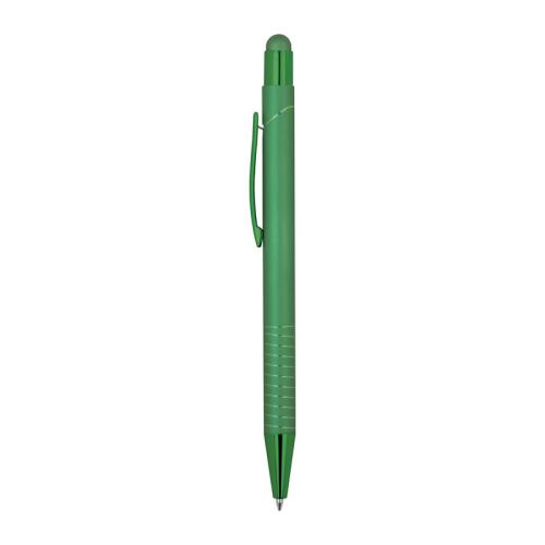 Ballpoint pen with integrated touch pen for smartphones and tablets. Features a glossy color-mirror finish, blue ink.