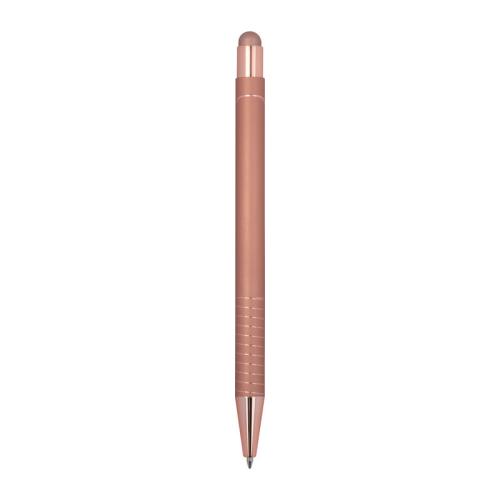 Ballpoint pen with integrated touch pen for smartphones and tablets. Features a glossy color-mirror finish, blue ink.
