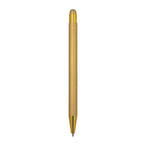 Ballpoint pen with integrated touch pen for smartphones and tablets. Features a glossy color-mirror finish, blue ink.