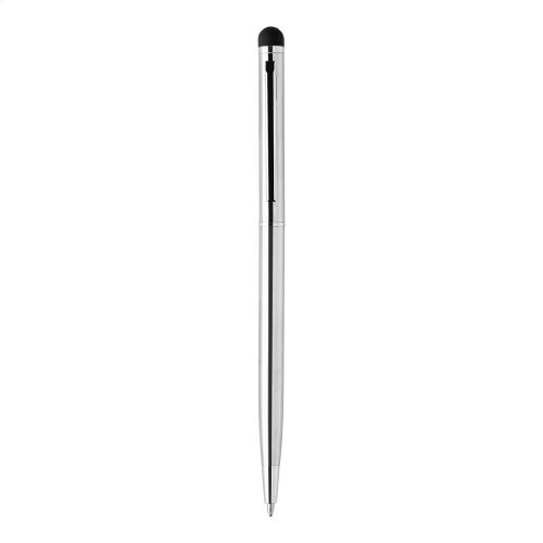Recycled stainless steel twist ballpoint and touch screen pen with chrome parts. With blue refill.