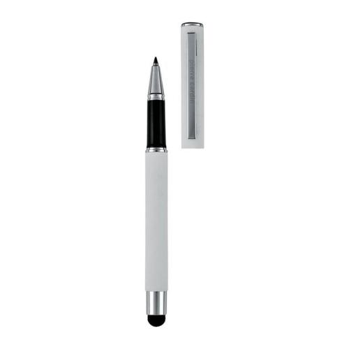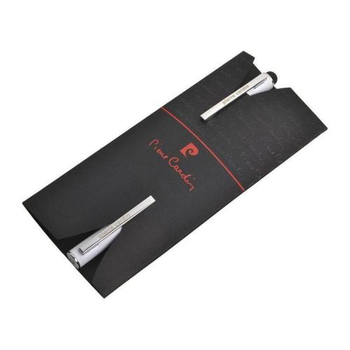 Luxury set of roller and ballpoint pen Pierre Cardin with aluminium body and rubber surface finish in black color. The roller contains a blue refill Schneider with the tip 0.5 mm, the ballpoint pen contains a quality blue refill with the tip 1 mm.
