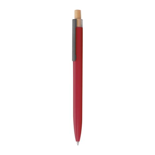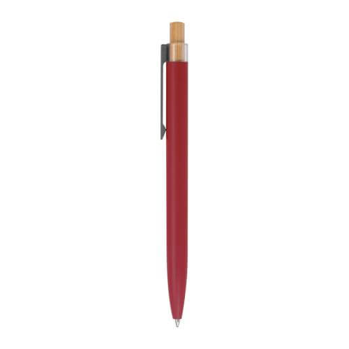 Writing set consisting of a ball pen with blue writing semi-gel refill and a rollerball made of recycled aluminium, with metal clip and bamboo pusher in an environmentally friendly box.