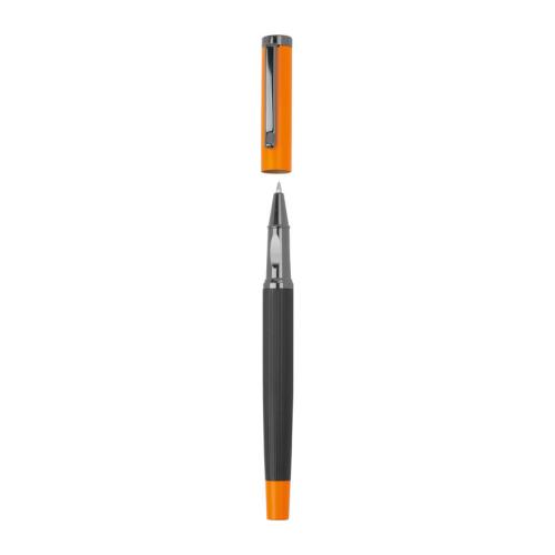 Blue-writing metal writing set consisting of a ballpoint pen (800 m writing length) and a rollerball pen (500 m writing length) in a color-coordinated folding box.