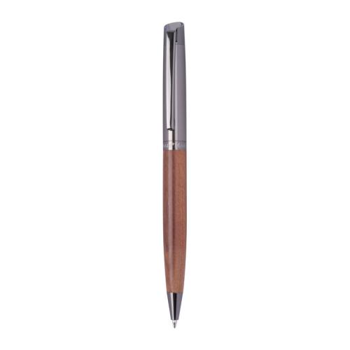 Mark Twain writing set made of stainless steel and wood. Ballpoint pen writes in blue, 1200 m writing length; rollerball writes in blue, 400 m writing length.