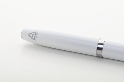 Recycled aluminium pen set with roller and ballpoint pen in black paper gift box. With blue refill.
