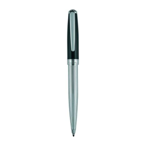 Luxury copper writing implements Pierre Cardin in a massive design. Nice combination of silver and black colour with fine engraving on lower part of the pen. The pen nib is protected by a cap in black colour. Pen 13.7 × 1 cm; Cartons (pcs): 20.