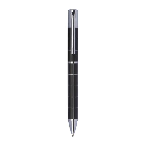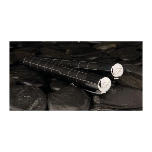 Classy Ferraghini metal writing set, consisting of a black-writing ball pen and a blue-writing rollerball in a wonderful case.