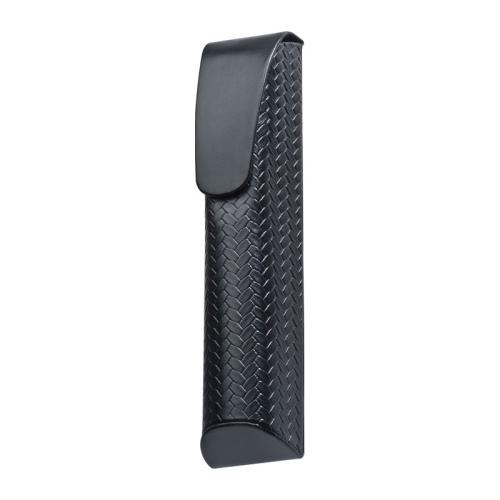 Luxurious Ferraghini ball pen with twist mechanism. The combination of black-lacquered surface and cloth cover in braided design is highlighted by occasional chrome accents. The blue-writing metal ball pen is stored in a velour padded artificial leather case with magnetic closure.