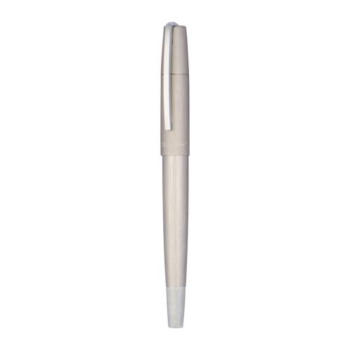 Ferraghini writing set in elegant matt brushed metal. The set consists of a blue twist action ball pen and a rollerball.