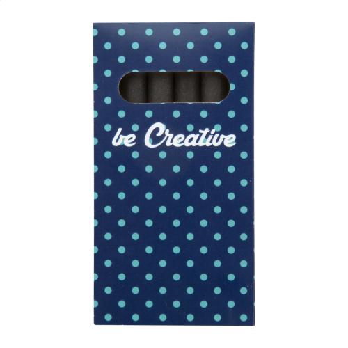 Black paper covered, coloured crayons (6 pcs) in full colour printed paper box. Price includes digital printing. MOQ: 100 pcs.