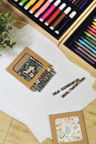 12 pc rectangular wooden coloured pencil set with white finish. In kraft paper box with large window. Ideal for all over UV LED printing.
