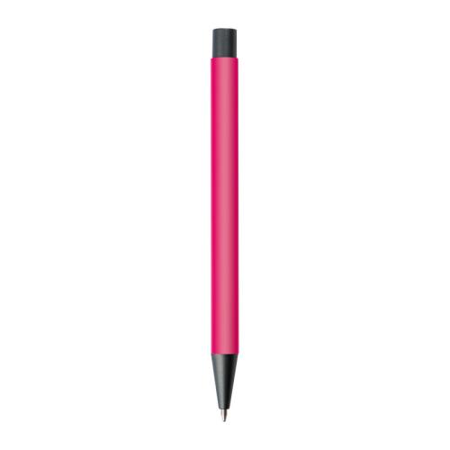Plastic ballpoint pen with blue-writing refill, coloured shaft and metal clip.