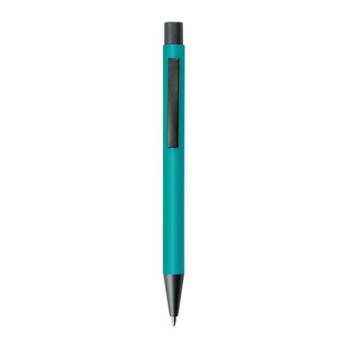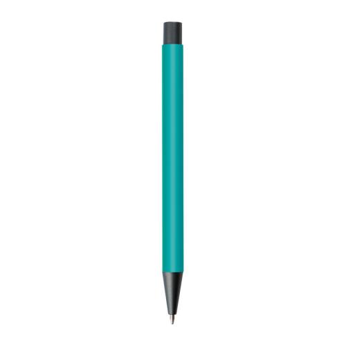 Plastic ballpoint pen with blue-writing refill, coloured shaft and metal clip.