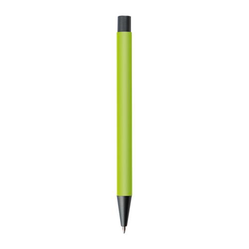 Plastic ballpoint pen with blue-writing refill, coloured shaft and metal clip.