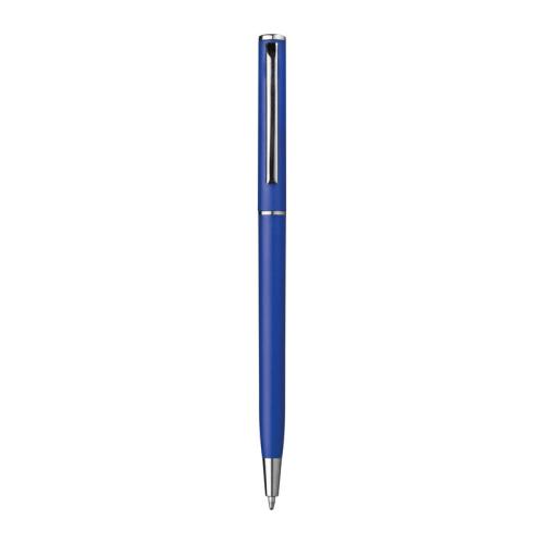 Twist mechanism ball pen made of plastic with blue-writing refill. Thanks to its slim shape, this ball pen is perfectly suitable for notebook loops.
