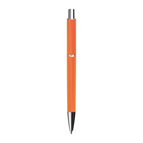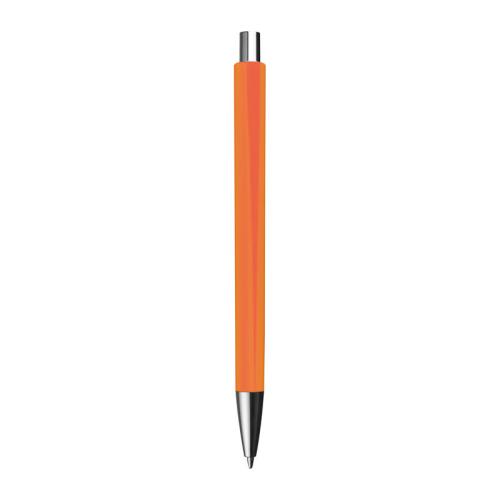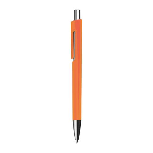 Colourful plastic ball pen with a jumbo blue-writing refill and silver applications.