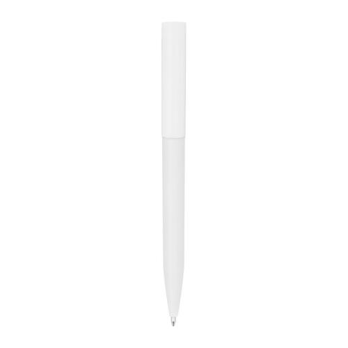 Plastic ball pen with blue writing refill and extraordinary clip.