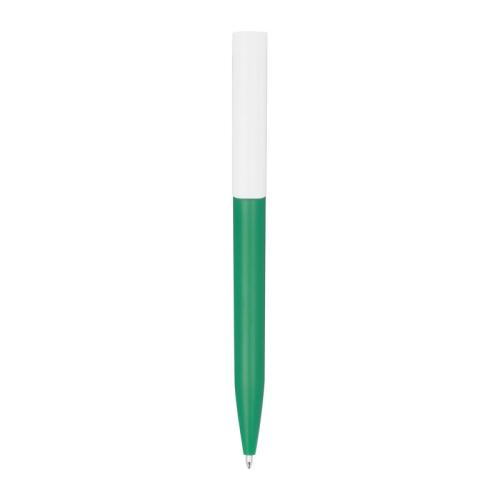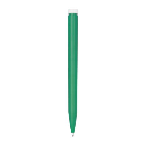 Plastic ball pen with blue writing refill and extraordinary clip.