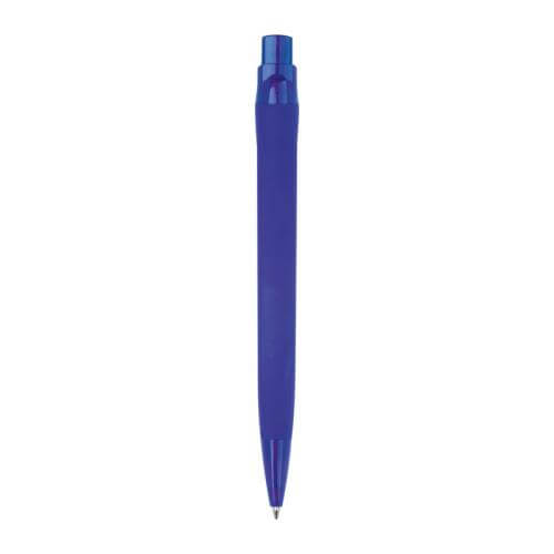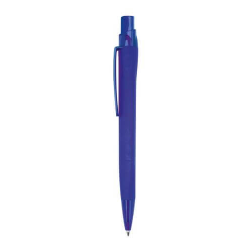 Rubberized plastic ballpoint pen with blue ink refill (approx. 800 m writing length).