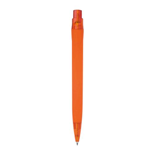 Rubberized plastic ballpoint pen with blue ink refill (approx. 800 m writing length).