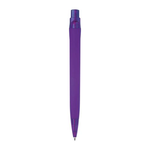 Rubberized plastic ballpoint pen with blue ink refill (approx. 800 m writing length).