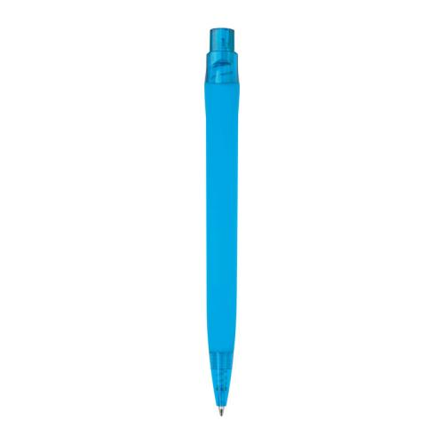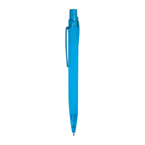 Rubberized plastic ballpoint pen with blue ink refill (approx. 800 m writing length).