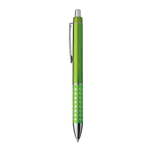 Plastic ball pen with sparkling dots grip zone and large blue refill.