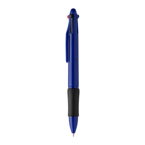 Recycled ABS multicolour ballpoint pen with rubber grip. With black, blue, red and green refills.