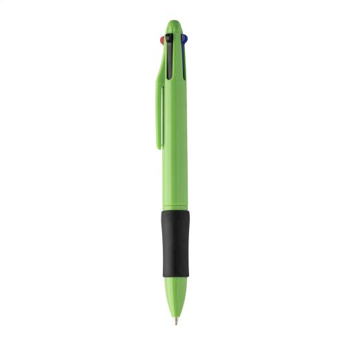Recycled ABS multicolour ballpoint pen with rubber grip. With black, blue, red and green refills.