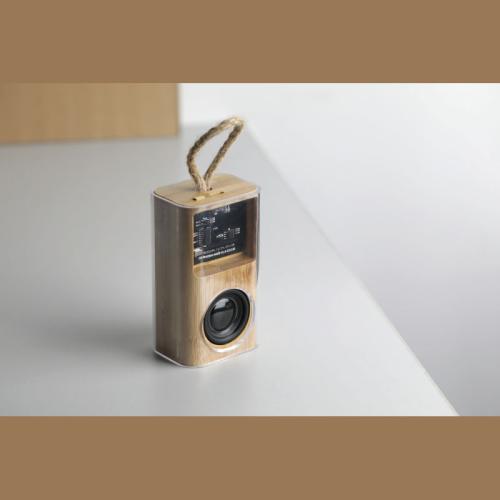 Bluetooth speaker (version 5.3) with transparent housing. Rechargeable battery (300 mAh), 3 watts output power and C-type charging cable included. Charging time approx. 2 hours / playing time approx. 1.5 hours.