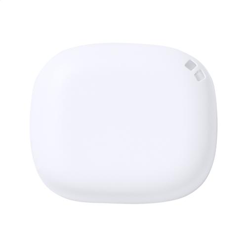Semi-transparent, true wireless stereo (TWS) earphones with visible electronic components and hands-free call function. In semi-transparent plastic charger case. Including USB charger cable.