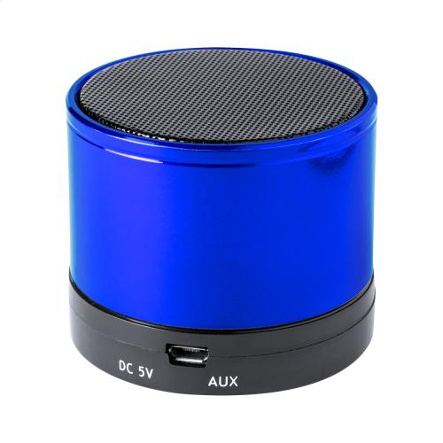 Wireless speaker in recycled aluminium and recycled ABS housing. With radio, MP3 player, hands-free call function and built-in rechargeable battery (300 mAh). Including USB charger and aux-in cable.