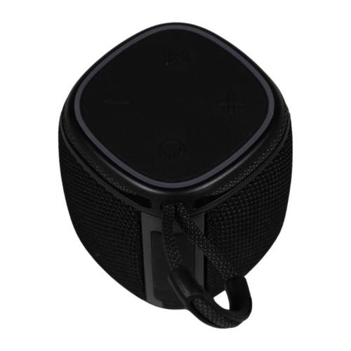 Schwarzwolf outdoor wireless slightly water resistant speaker is made in a black color with a wrist strap. It has an output of 5W, a range of 20 m, Bluetooth V5.1., a slot for a TF card and an USB-C connector. It contains an integrated rechargeable battery with a capacity of 500 mAh. Playing time on one charge is approx. 3–4 hours. Charging time to full charge is approx. 1–2 hours. The laser-engraved logo and border of the control panel is illuminated by changing colors of LED light. The speaker has a IPX5 water protection. The charging cable is included in the package. Packed in a gift box.