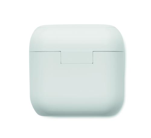 ABS True Wireless Stereo (TWS) 5.3 wireless stereo earphones with microphone and 30 mAh build-ion battery and 200 mAh charging box. Playing time approx. 4 hours. Auto-pairing.